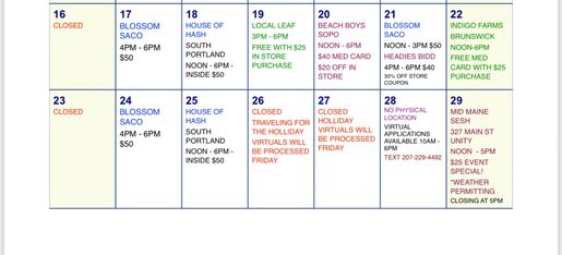 PLEASE EMAIL OR TEXT US YOUR NAME, DOB, ADDRESS, AND A PICTURE OF YOUR CURRENT MAINE STATE LICENSE OR ID. WE WILL EMAIL/TEXT YOU BACK WITH HOW TO RENEW YOUR CARD WITHOUT COMING IN OR MAKING AN APPOINTMENT.