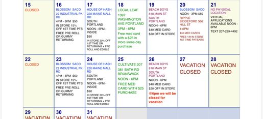 PLEASE EMAIL OR TEXT US YOUR NAME, DOB, ADDRESS, AND A PICTURE OF YOUR CURRENT MAINE STATE LICENSE OR ID. WE WILL EMAIL/TEXT YOU BACK WITH HOW TO RENEW YOUR CARD WITHOUT COMING IN OR MAKING AN APPOINTMENT.