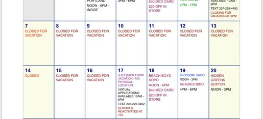 Walk ins welcome to all our locations or text (207) 229-4492.