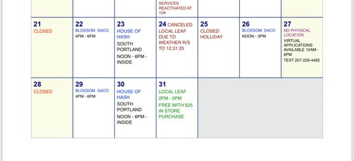 DECEMBER WALKIN IN CALENDAR ABOVE